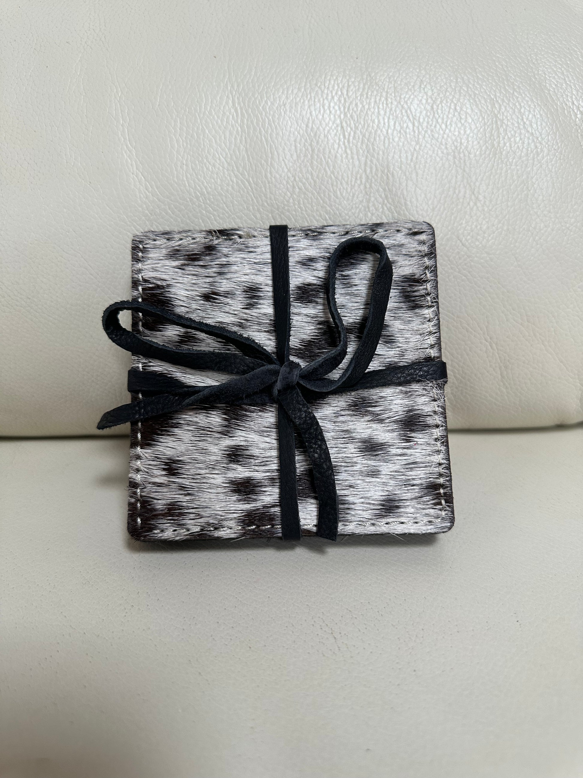 set of 4 cowhide and leather coasters